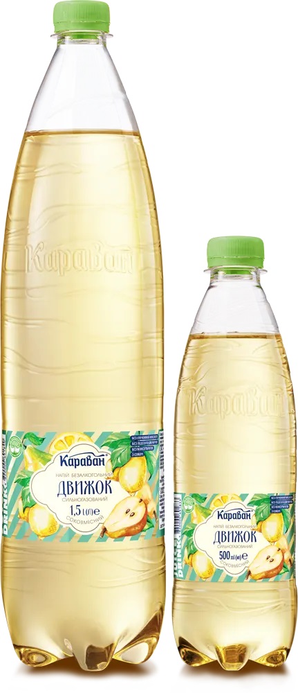 Напій безалкогольний сильногазований соковмісний «Движок» 1.5л, 0.5лГрушево-лимонний мікс, що має смак та аромат спілої солодкої груші сорту «Бера» з легкою нотою лимону.